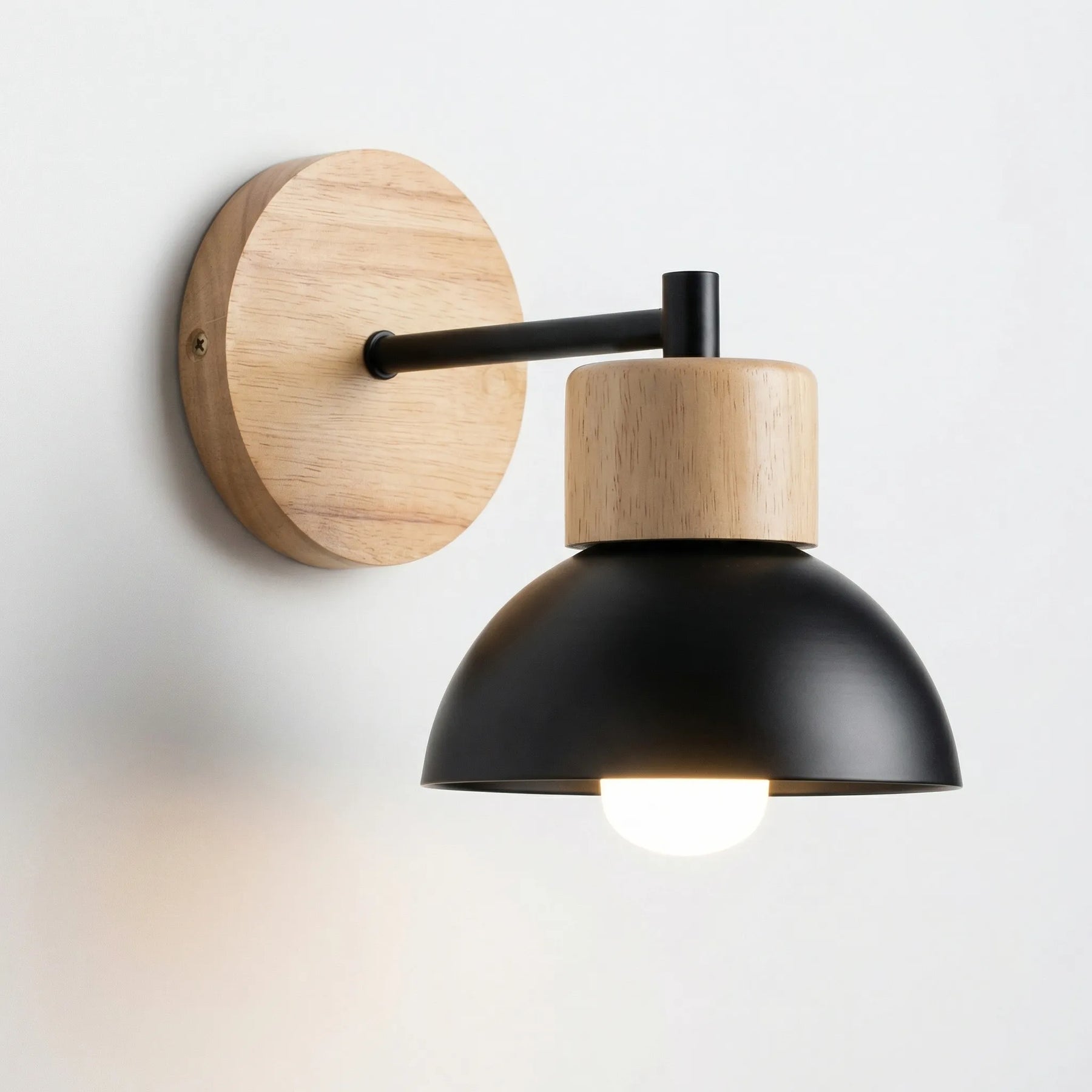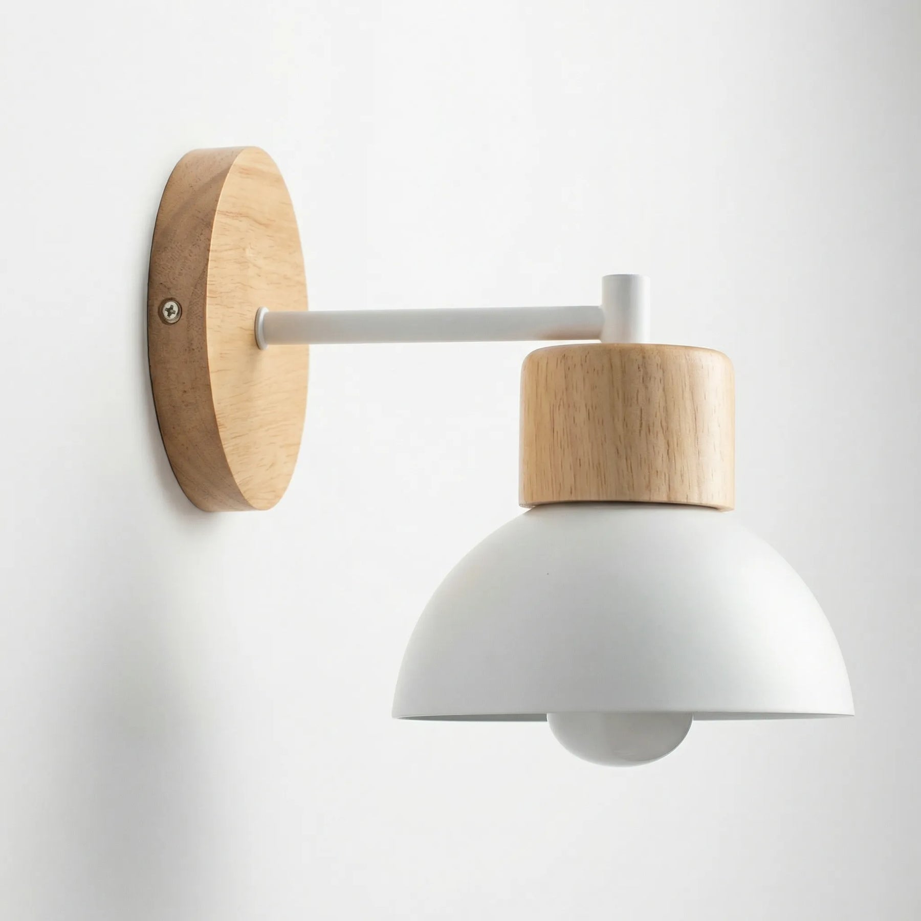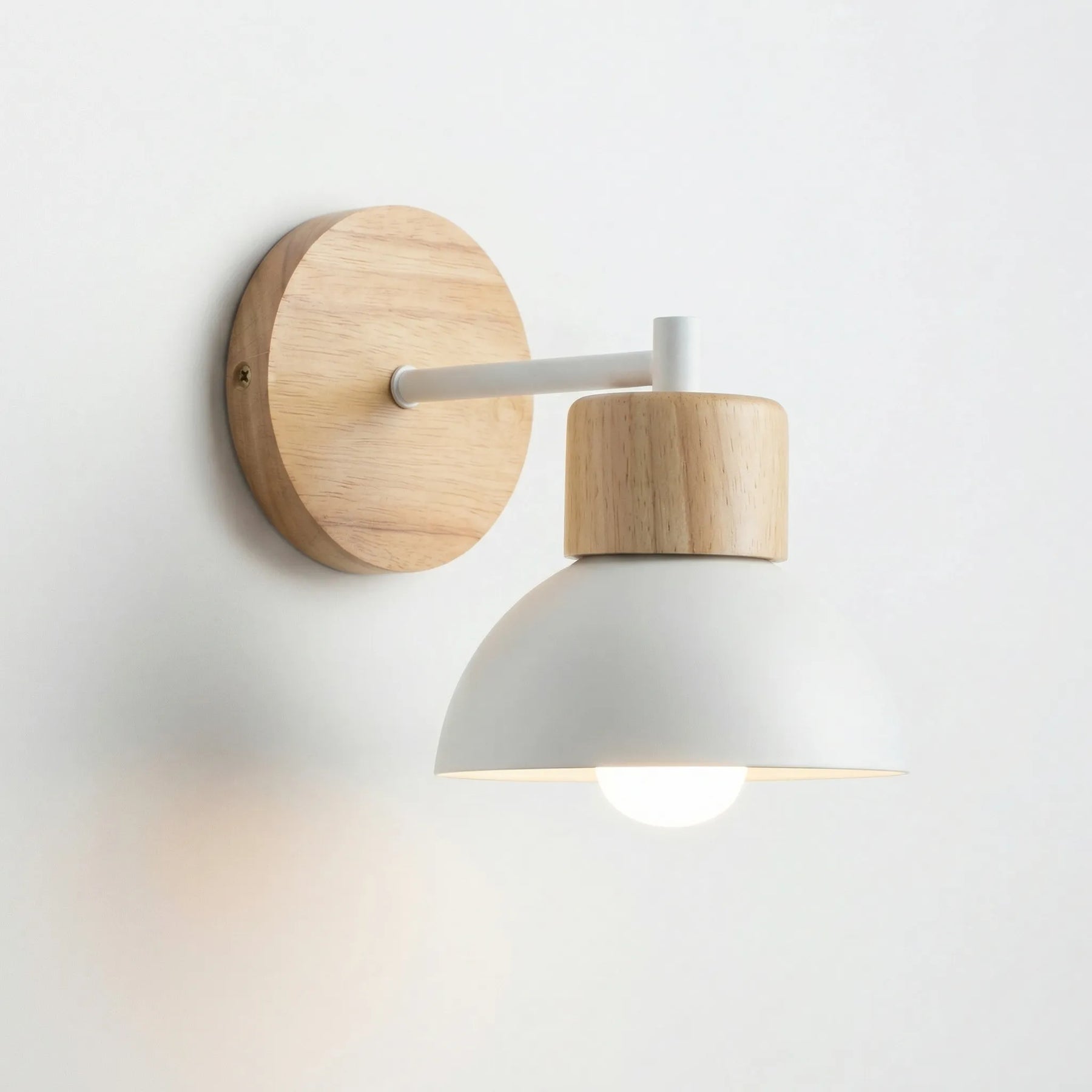A compact wall light that combines a dome-shaped shade with a warm natural base.